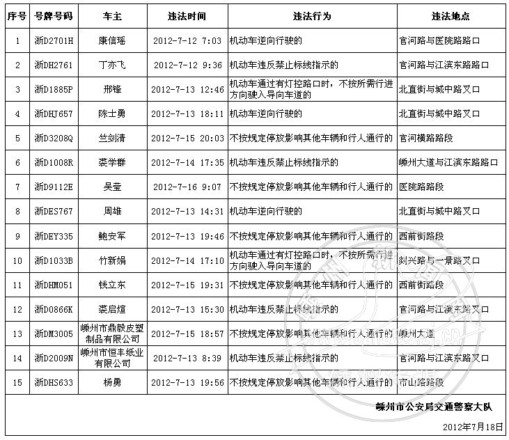 下列机动车和驾驶人因有交通违法行为被交警查处,现予以曝光:
