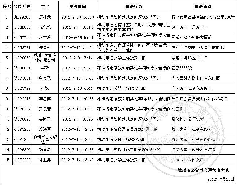 下列机动车和驾驶人因有交通违法行为被交警查处,现予以曝光: