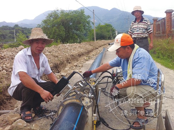 今年年初,为保证村民有充足的自来水可用,金庭镇投入294万元,对该镇自来水厂的自来水管线进行扩容。扩容之后,将直接改善金庭镇1.1万村民的饮用水条件。7月2日,工程开工之后,正碰上了今年出梅之后的高温天气,但为抢抓进度,工程施工一直没有停歇。