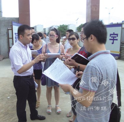7月27日,绍兴市委宣传部组织浙江日报、绍兴日报和绍兴电视台等近10家媒体,前来采访我市的“绍兴市新三年建设计划项目”进展情况。图为记者们在中国领带城物流中心采访。