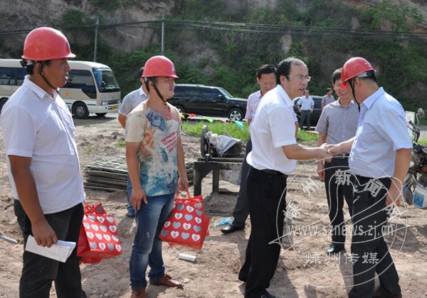 市委书记金志、副市长董友庆、市政协副主席李香富来到104国道改建工程嵊州段黄泥桥立交桩基工程、罗小线各标段施工现场,向奋战在一线的交通和电力工作者表示感谢,并向他们送上夏令慰问用品。金志再三叮嘱项目施工负责人一定要科学安排工期,做好防暑降温工作,确保项目施工顺利、安全,要求有关部门采取切实措施,确保高温下的劳动者工作舒心、身体健康。金志说,104国道嵊州段和罗小线改建工程是今年我市的重点工程,十分感谢大家为我市城市建设、经济社会发展作出的贡献,希望大家在注意保护身体,确保安全生产的同时,保证施工质量,按期完成工程。