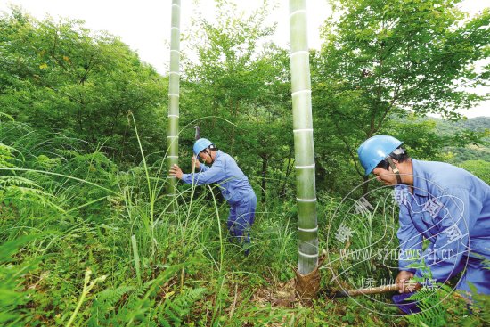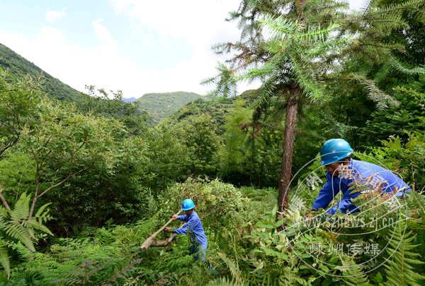 随着台风天气的到来,接近线路的树枝会带来一定的安全隐患,如果不及时清除,树枝触碰电线可能导致线路跳闸。为此,市供电局组织力量在台风“苏拉”来临前对各山区线路进行了排查清障工作,并出台多项防台措施,以确保电网安全。图为电力工人在贵门乡玠溪村清理树障的现场。