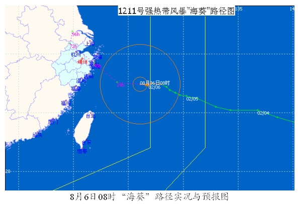 据目前气象资料分析:“海葵”未来逐渐向我省沿海靠近,强度缓慢加强,最大可能于7日后半夜到8日白天在我省中北部沿海登陆,正面袭击我市,且登陆时强度为台风,将对我市造成严重影响。今天下午起受“海葵”外围环流影响,风雨逐渐加大,7~9日将给我市带来明显大风暴雨过程,有大到暴雨,部分地区有暴雨到大暴雨,过程雨量普遍有100-200毫米,局部地区200毫米以上,风力7~8级阵风9~10级,请各有关方面特别注意。