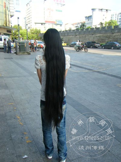 今年21岁的许园园,身高1.63米,模样挺俊秀,但更与众不同的是,她拥有一头引人注目的秀发。秀发养了十年,现已长到她的膝盖下方,足足有1.30米。