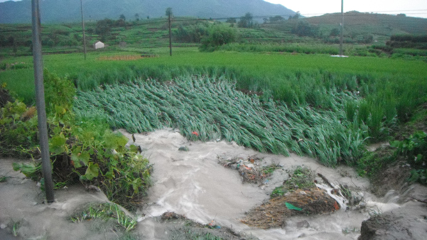 8月10日下午3点40分,贵门乡贵门村迎来了一场60年不遇的暴雨。2个多小时后,雨渐止,通讯员撑伞外出采访,发现暴雨使农作物和房屋多处受损。