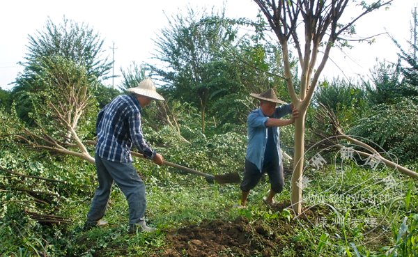 江贤祥有1000多亩花木,从2001年开始种植,现有桂花、红叶石楠、梓树等10多个品种。自台风来袭,他就彻夜难眠。8日早晨5点,他冒着狂风暴雨赶往田间查看。“惨不忍睹呀,眼前是一大片东倒西歪的花木。受损最大的是广玉兰和紫薇,价值在千元以上的树种就有五千株倒伏。”9日上午,江贤祥就买来竹竿,带领50多个工人前往花木田着手自救。