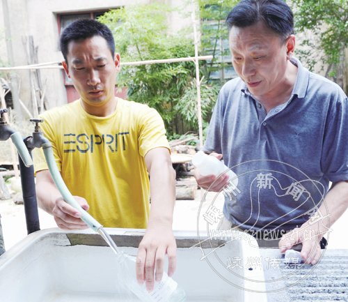 为保证我市农民群众的饮水卫生安全,市疾控中心建立监测制度,采用定期和不定期抽样的办法对农村生活饮水水质进行监测,并及时提供监测报告。图为昨日监测人员正在竹溪乡盛家坞村郑坞坑自然村,对农村饮用水水质进行采样。