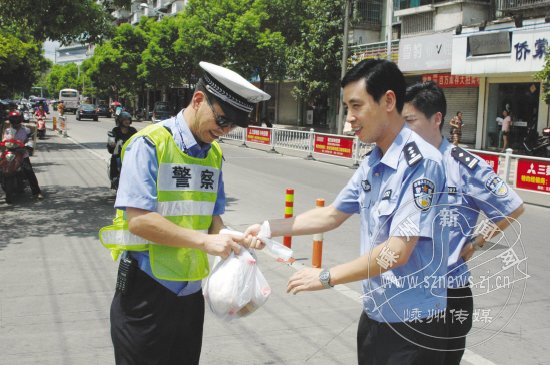 近日天气炎热,持续高温。8月17日中午,市委常委、公安局长张永明亲切慰问了坚守在炎炎烈日下的交通民警,给他们送上矿泉水和慰问品,并叮嘱他们做好防暑降温工作。局党委委员、副局长周晓国,局党委委员、交警大队大队长陈善良陪同慰问。