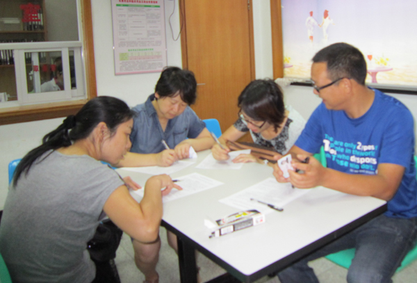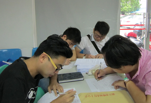 电视台工作人员在登记填表