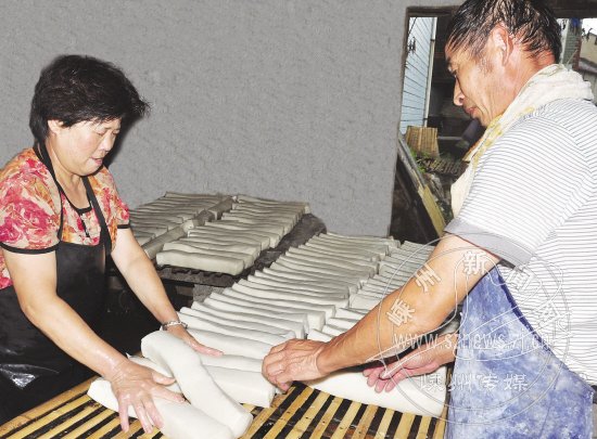 年糕本是冬季制作的小吃,时下在我市多个农贸市场里都可以买到新鲜现做的年糕。一位摊主表示:“夏天销售年糕,满足的是个性消费群体的需求。”图为三界镇一年糕加工点正在制作年糕。