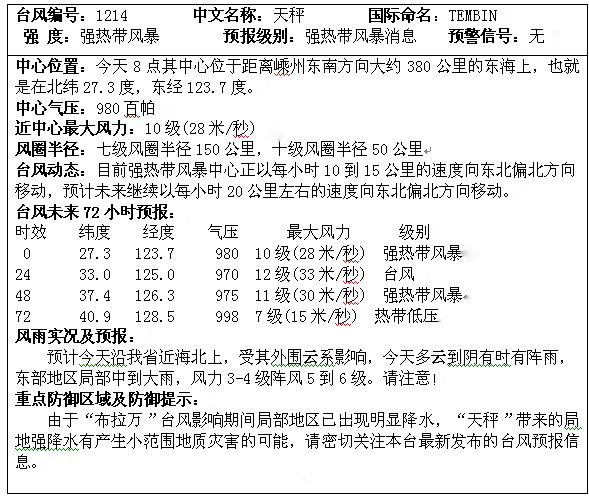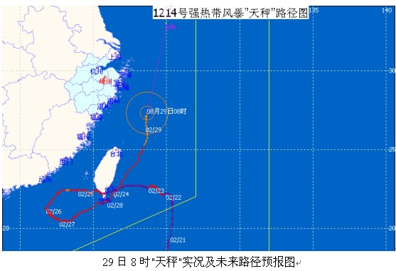 嵊州市气象台 2012年14号台风第03期 2012年8月29日9时30分发布