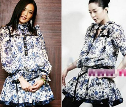 这么多的明星偏偏只是这一对儿撞的比较火热,13次华丽丽的撞衫!都是各有千秋,服装美人更美。两位当红美人撞衫撞的也有别于其他明星。白色印花抹胸礼服,大家风范的两个女神都选择了这款,可见两个人的眼光和品味还是有相似之处的。礼服束胸设计配上优雅的灰色印花,清丽高雅。