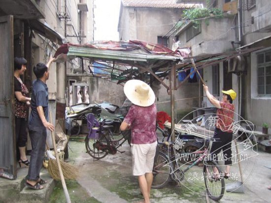 近日,白莲堂社区组织10多名社区志愿者,分四组深入社区生活区,开展了一次“搞卫生、清死角”活动。活动中,社区志愿者们清除杂草,捡烟头、纸屑,清理堆积物,使得社区生活区面貌焕然一新。图为志愿者在清理杂物。