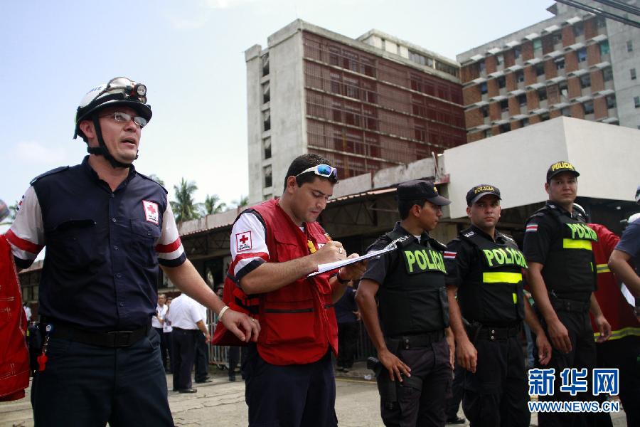 9月5日,警察和消防员站在哥斯达黎加蓬塔雷纳斯的一所医院外。