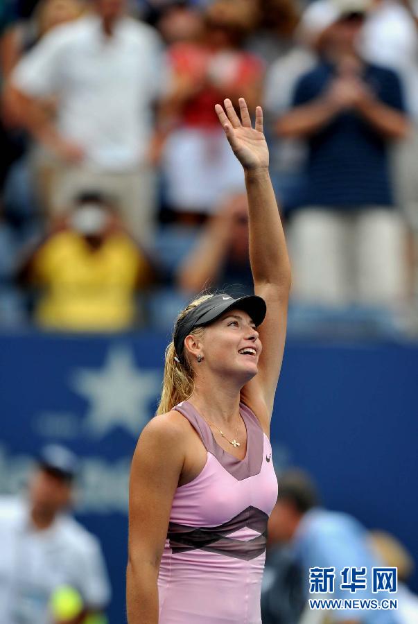 9月5日,莎拉波娃在比赛后庆祝。当日,在2012年美国网球公开赛女单四分之一决赛中,俄罗斯选手莎拉波娃以2比1战胜法国选手巴托丽,晋级四强。新华社记者王雷摄