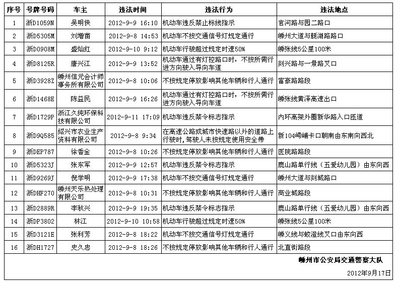 下列机动车和驾驶人因有交通违法行为被交警查处,现予以曝光: