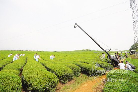 连日来,浙江电视台摄制人员正辗转我市各地,抓紧拍摄体现嵊州整体风貌的形象片。新嵊州城市形象片时长约五分钟,分序幕、慕美而来、美的事业、造美世界及尾声五个章节,以画面视觉冲击力和音乐美取胜。预计该片将于9月下旬拍摄完成。图为摄制人员在崇仁镇一茶场拍摄。