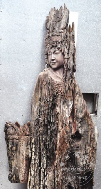 《苗寨春色》是一件融自然造化美与人工雕刻美为一体的艺术精品,创制者以独到的思维和过人的眼力,在一块长200厘米、厚仅8厘米的古沉朽木上施艺。他以娴熟的高超刀功,交叉运用浮雕和圆雕技巧,在保持古沉木整体材质美的前提下,依形度势地掀开古沉木那层神秘的“面纱”,从中托出一位苗家姑娘的青春形象。