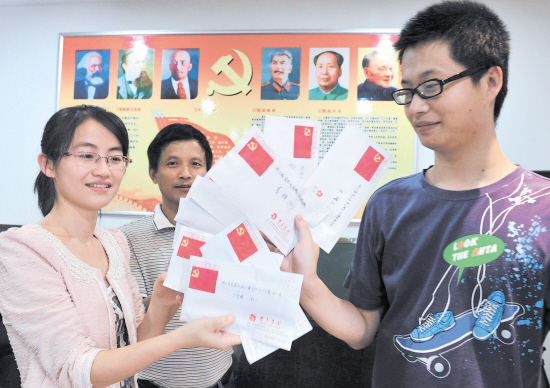 今年,嵊州市黄泽镇浙江双鸟集团有限公司党支部要求外省市在该企业务工的党员,向父母等长辈写中秋家书,寄托子女对长辈的亲情与慰问。图为9月20日,该公司外地党员正在交“作业”的现场。