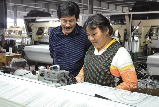 经过20多年的发展,石璜镇目前共有大小不一的纺织企业800余家,其中60余家为该镇重点企业,去年创下了18亿元的产值。该镇纺织业正在积极谋求转型升级,日兴纺织有限公司等6家企业今年技改总投入超过1亿元,产品从过去的领带面料向浴布、箱包布、窗帘布转型。图为日兴纺织有限公司无尘喷水纺机车间一角。