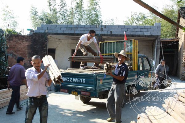 小胡的爷爷前几天犯气喘病刚刚住院回来,身体还没康复,但人逢喜事精神爽,老人喘着粗气执意要来帮忙搬材料。小胡的奶奶也特别激动,笑嘻嘻地张罗地替大家端茶送水。