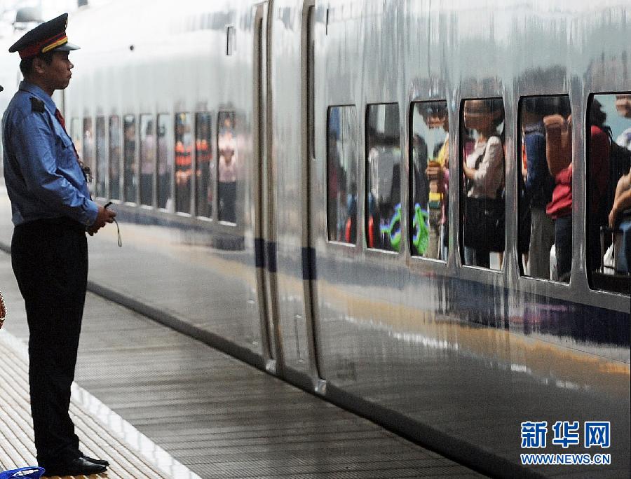 10月6日,一列火车驶进苏州火车站站台。当日,中秋国庆长假接近尾声,外出游玩或探亲的旅客开始陆续返程,苏州火车站迎来长假返程高峰。 新华社发(杭兴微摄)