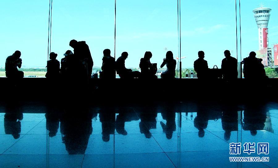 10月6日,旅客在南京禄口国际机场大厅内候机。当日,中秋国庆长假接近尾声,外出游玩或探亲的旅客开始陆续返程,南京禄口国际机场迎来节日返程客流高峰。 新华社发(王新摄)