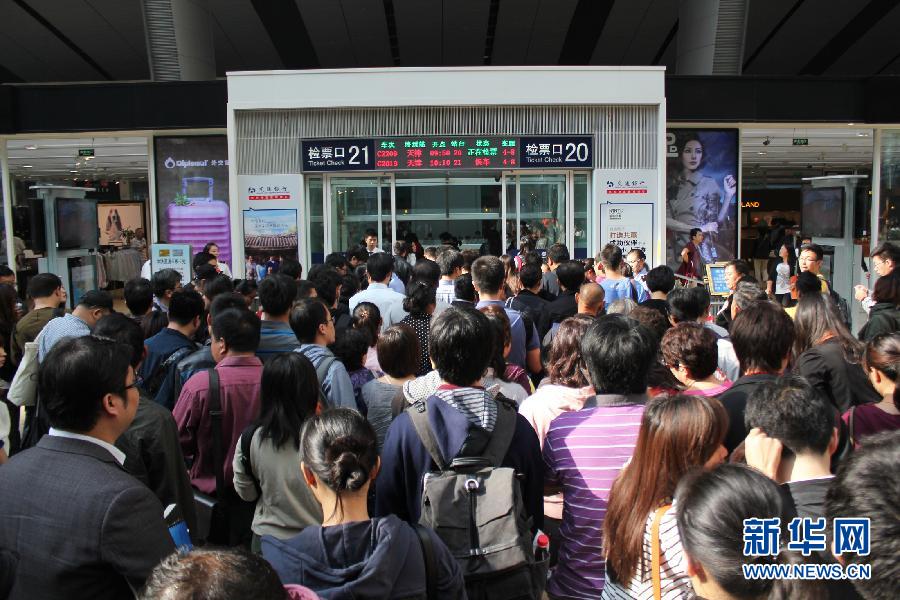 10月6日,旅客在北京南站等候检票上车。