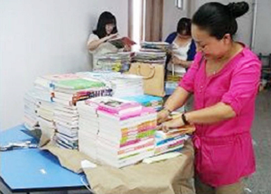 开学以来,剡溪小学十分注重校园文化建设,积极做好三千册新书的编录工作,以让这些新书以最快的速度上架与孩子们见面。图为老师们在校图书馆抓紧编录新书的情景。