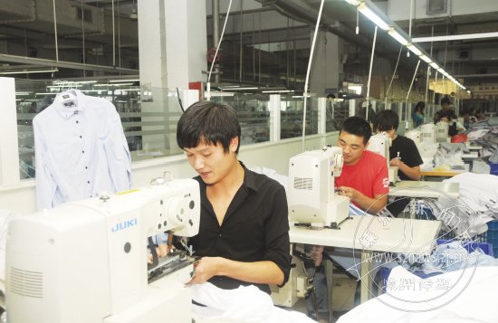 近日,绍兴雅士林衬衫有限公司的衬衫产品照片登上了新西兰主流报纸的头版。据悉,雅士林衬衫在新西兰广受欢迎,还被该国媒体评为第一品牌。依靠品牌创建,雅士林衬衫有限公司的出口业务相当稳定,该公司下半年的衬衫订单都已排满了。图为该公司生产车间的场景。