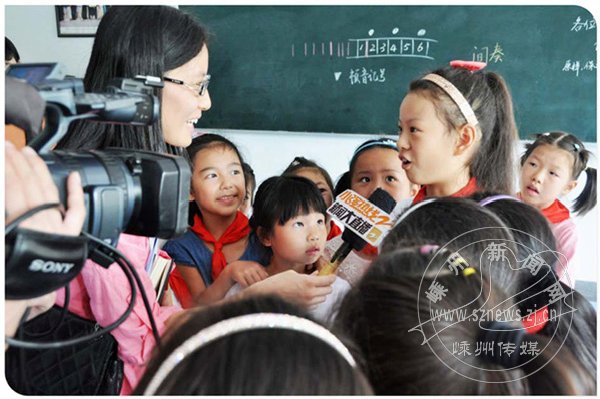 近日,浙江教育科技频道的记者来到城南小学,欣赏了“小梅花”金奖得主陈梓滢、张可蓥等的精彩表演,并走进教室观看了学校《我爱越剧》的课堂教学流程,就“学校特色教育开展对弘扬地方文化,提升学生综合素质”展开了专项采访。图为记者在采访该校“小小越剧团”成员。