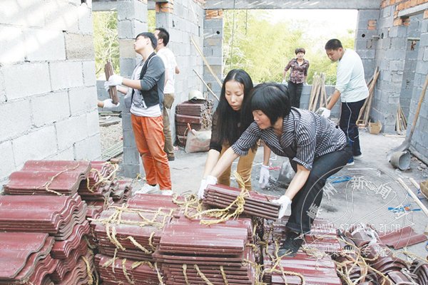 10月13日中午12点,早早吃过中饭的爱心社员就聚集在东方巨龙门口整装待发。这天是新昌孤儿小胡家房子落成盖瓦的日子,瓦片不够,社员们一方面为他们送去瓦片,另一方面,准备为他们家做半天小工。为此,社员们还翻出了搁置不穿的旧衣裳,换上了运动鞋,三毛还特地准备了13双手套。
