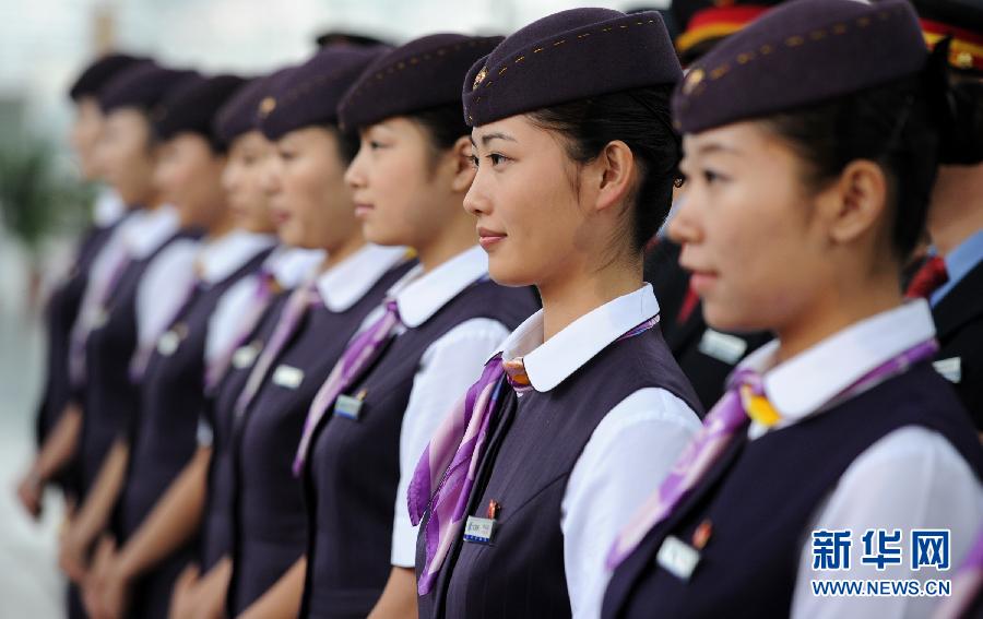 10月16日,列车服务员参加合蚌高铁开通仪式。当日,合肥至蚌埠高速铁路正式开通运营。合蚌高铁是京沪高铁与沪汉蓉客运专线间的高速连通线,也是北京至福州客运专线的组成部分。运营里程132公里,沿线设合肥、合肥北城、水家湖、淮南东、蚌埠南、蚌埠等6座车站,设计时速350公里,运营初期按时速300公里运行。合蚌高铁开通运营,不仅形成合肥北上的快速通道,而且通过已投入运营的合宁、沪宁、合武高铁,把京广、京沪、沪汉蓉三条高铁主干线紧密连接起来,形成我国中部腹地通往环渤海、长三角、珠三角地区的大能力快速客运通道。新华社记者刘军喜摄