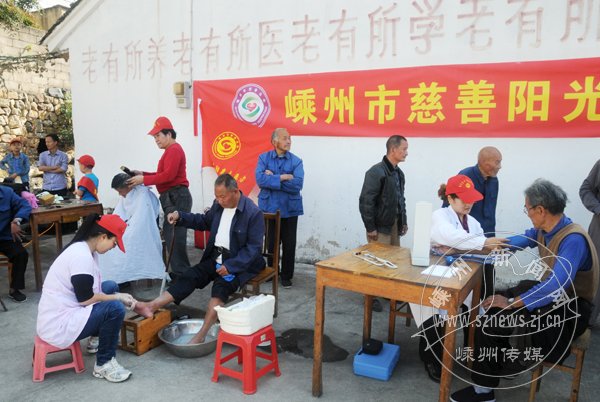 10月21日,市慈善阳光志愿者一行20多人到金庭镇敬老院开展爱心活动。修剪指甲、理发、义诊、洗头、做饺子,大家忙得不亦乐乎。