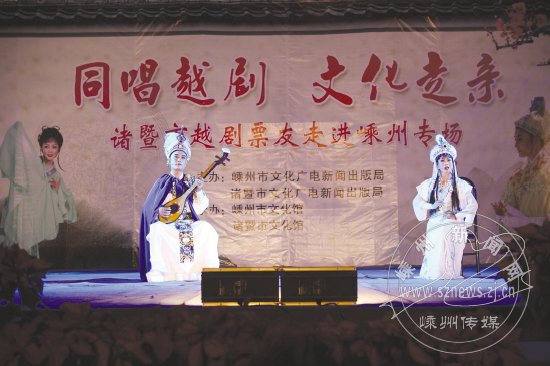 日前,诸暨市文广新局组织40多位越剧票友来我市文化走亲,在文化广场为数千名戏迷表演了折子戏《游上林》、喜剧小品《点秋香》等10个节目,受到了现场观众的欢迎。这也是诸暨戏迷文化走亲的第一站,来到越剧故乡献演,让他们“很激动很兴奋很有感觉”。