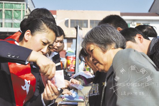 10月是“反假货币宣传月”,我市各金融机构工作人员纷纷走上街头,深入乡镇,以发放宣传资料、现场反假货币技术培训等形式开展反假货币宣传活动,以保护人民群众利益,优化金融生态环境。图为近日中国银行嵊州支行工作人员在甘霖镇农贸市场门口进行反假货币知识宣传。