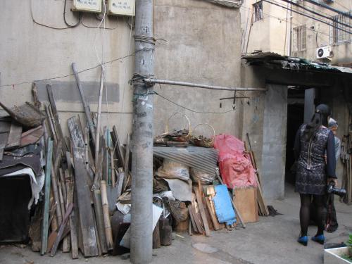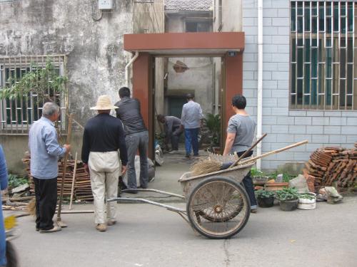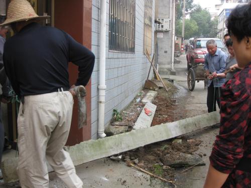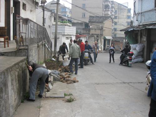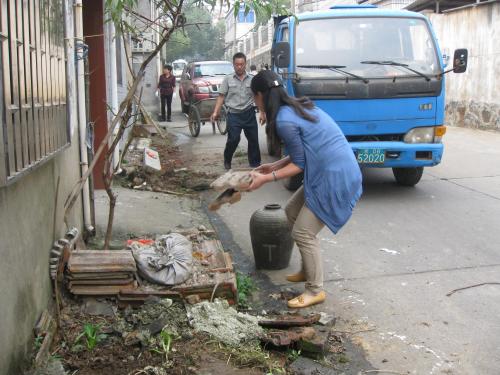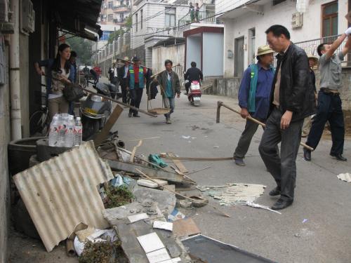 清理居民屋前堆积物