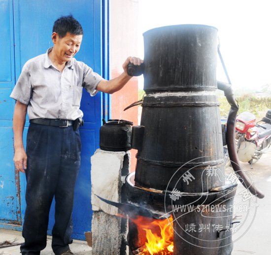 进入秋季来,我市不少农村聘请烧酒师傅,以谷物及薯类等富含淀粉的作物为原料,经过传统的发酵蒸馏工艺制成烧酒。口味芳香浓郁,深受农村群众欢迎。图为烧酒师傅正在浦口街道一农家用蒸馏法制作烧酒。