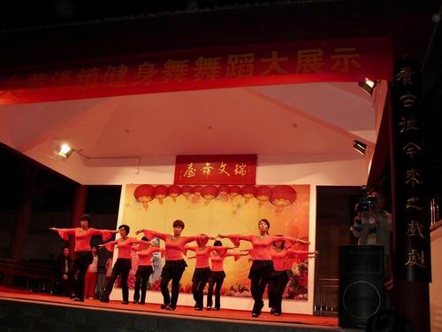 为繁荣乡村文化,引导和激励全镇群众开展健康向上的文体活动,充分展示当代农村妇女的精神面貌,全面建设富裕、文明、和谐的新黄泽。11月3日晚上,该镇在黄泽镇文化活动中心举办了“喜迎十八大、幸福新生活”各村健身舞大展示。来自该镇光明、七一、兰洲、顺富、李丰等行政村的10支舞蹈队,100多人表演了《魅力健身操》、《健身舞》、《太极剑》、《太极拳》等舞蹈。