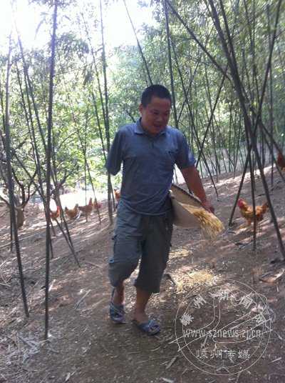 年初,王锦芳抓了1000只小鸡来养,现在都已长大可以出售了。由于鸡都放在山上和竹园里满山跑,喂的又都是玉米等天然饲料,所以肉质鲜美,很受贩销户的喜欢。