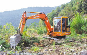 嵊州狮子山旅游养生综合体项目是浙江省重大浙商回归项目,这项签约投资30亿元的项目,是我市继绍兴温泉城后又一成功招商的旅游大项目。图为昨日施工单位正在平整场地,作开工前期的准备。