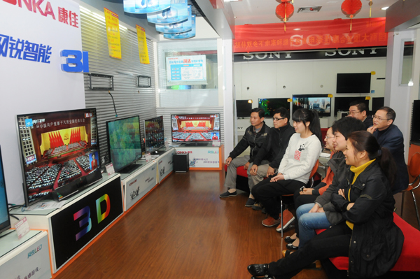 在市区的一些商场,不少电视机专柜正在播放十八大开幕式的现场直播,引来市民驻足观看。市民张龙告诉记者,作为一名党员,他对十八大充满了期待。“期待十八大,就是期待有更多惠民政策。”