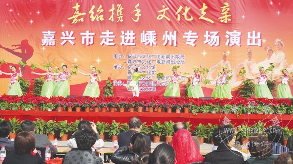 “嘉绍携手文化走亲”活动昨日走进长乐镇。在这场由嘉兴市文广新局和绍兴市文广新局联合主办的文化走亲中,来自嘉兴市的40多名演职人员来到长乐镇向村民献上精彩的文艺表演。