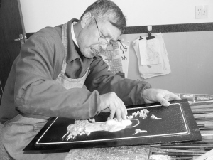 近日,嵊州市黄泽镇的魏明路成为黄杨象牙嵌雕首位绍兴市非物质文化遗产传承人。40多年来,他一直从事镶嵌雕刻的设计和研究工作,其作品多次被刊登在《中国传统木雕》等报刊上,并多次获得国家、省、市奖项。