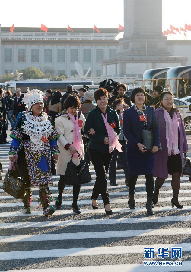 11月14日,中国共产党第十八次全国代表大会闭幕会在北京人民大会堂举行。这是代表走向人民大会堂。 新华社记者 王建华 摄