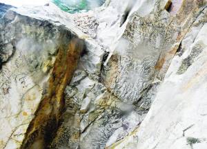 嵊州市浦口街道赵家岩水库边的一块岩石上,长满了黑色的“草”。这面“长草”的岩石,吸引很多人来此“淘宝”,搬运大量图案精美的石块而回。据了解,这面岩石属于化石中的模铸化石。这类化石是古生物遗体留在岩层或围岩中的印痕和复铸物。