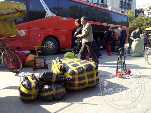 近日,每到中午时分,一辆长途客车就会出现在市区文化广场出口,分发来自杭州四季青服装批发市场的包裹。分发包裹的时候,熙熙攘攘的人群不仅对周围交通造成了严重的影响,更影响了自身的安全。文化广场不是物流中心,希望这样的事情不再发生。