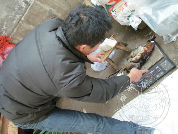 昨日上午10时许,在江滨市场外面,记者看见一个30多岁的男子在当街叫卖雉鸡,该男子称,每只雉鸡以斤卖,每斤价格为35元。