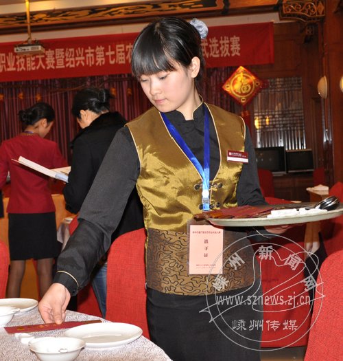11月19日,2012年嵊州市餐厅服务员职业技能大赛暨绍兴市第七届农民职业技能比武选拔赛在我市举行,从全市餐饮服务行业中挑选出来的20多名餐厅服务员参加了本次比赛。
