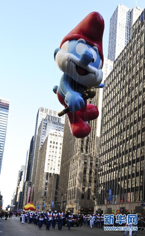 11月22日,在纽约曼哈顿举行的第86届梅西感恩节大游行上,蓝爸爸气球首次亮相。当天,一年一度的梅西感恩节大游行在纽约举行。梅西感恩节大游行由美国著名百货公司梅西百货主办,始于1924年,据梅西百货统计,今年有超过300万民众走上曼哈顿街头观看游行,同时有超过5000万观众通过电视转播感受这一年度盛事。新华社记者邓坚